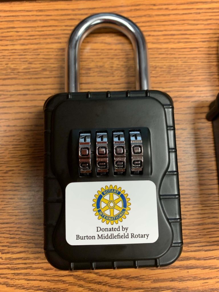 “Burton-Middlefield Rotary donated 230 lock boxes,” says Jim Dvorak, Rotary representative and Geauga County commissioner. “So, they are set for years to come.” In 2019, Rotary purchased grab bars for many seniors in the county which were installed by GDA staff. This year, Dvorak went back to the GDA on behalf of Rotary offering more help and the lock boxes were the expressed need. “It’s a good program for Rotary to support,” he said. “We care about our seniors.”