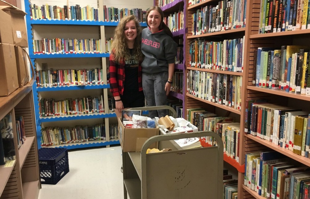 Pictured In Cover Photo: Chagrin Falls High School Juniors Nova Klein and Dinah Walter organize the middle school library collection by genre.