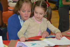 The Kindergarten students at Timmons Elementary shared the progression of their work throughout the school year with their families. They presented their portfolios of artwork, stories, and writings showcasing how much they have grown. Elizabeth Roche of Ms. Elizabeth Hope’s Kindergarten class, shared her portfolio with her mother Megan.