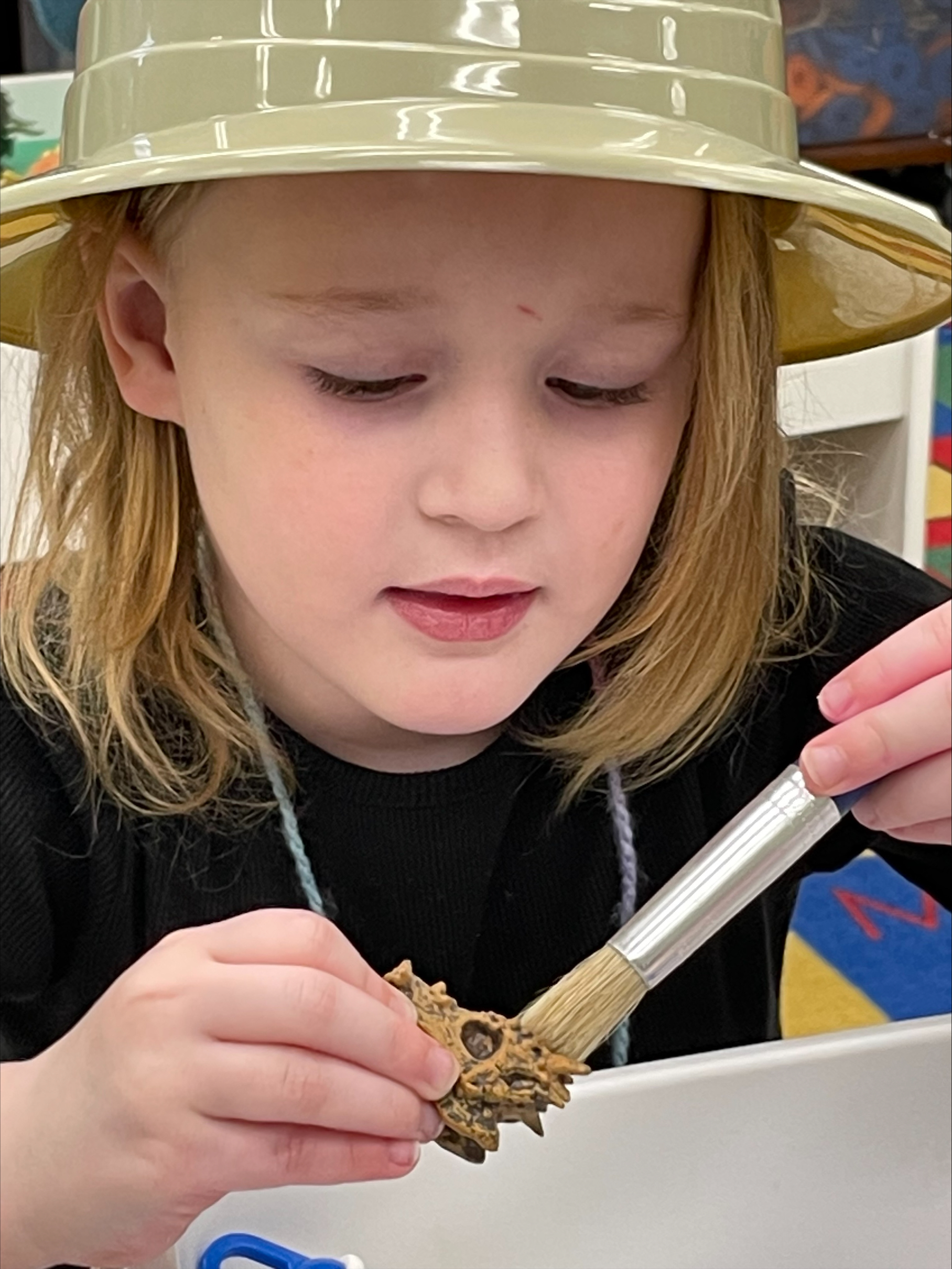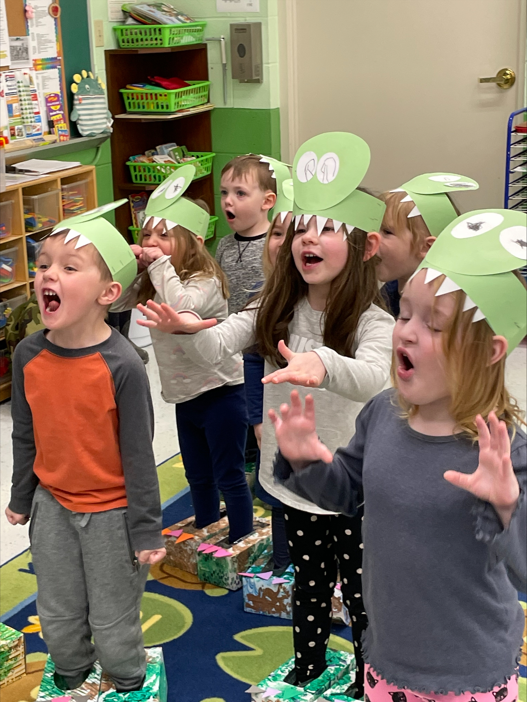 Saint Helen Preschools’ Busy Bees 3-4 year old class had a roaring good time during “dinosaur week.” Each year the preschool class enjoy a week filled with dinosaur themed activities. The theme is integrated through their daily activities throughout the week. They had opportunities to estimate, create, dance and move like dinosaurs, and even dig for dinosaur bones!