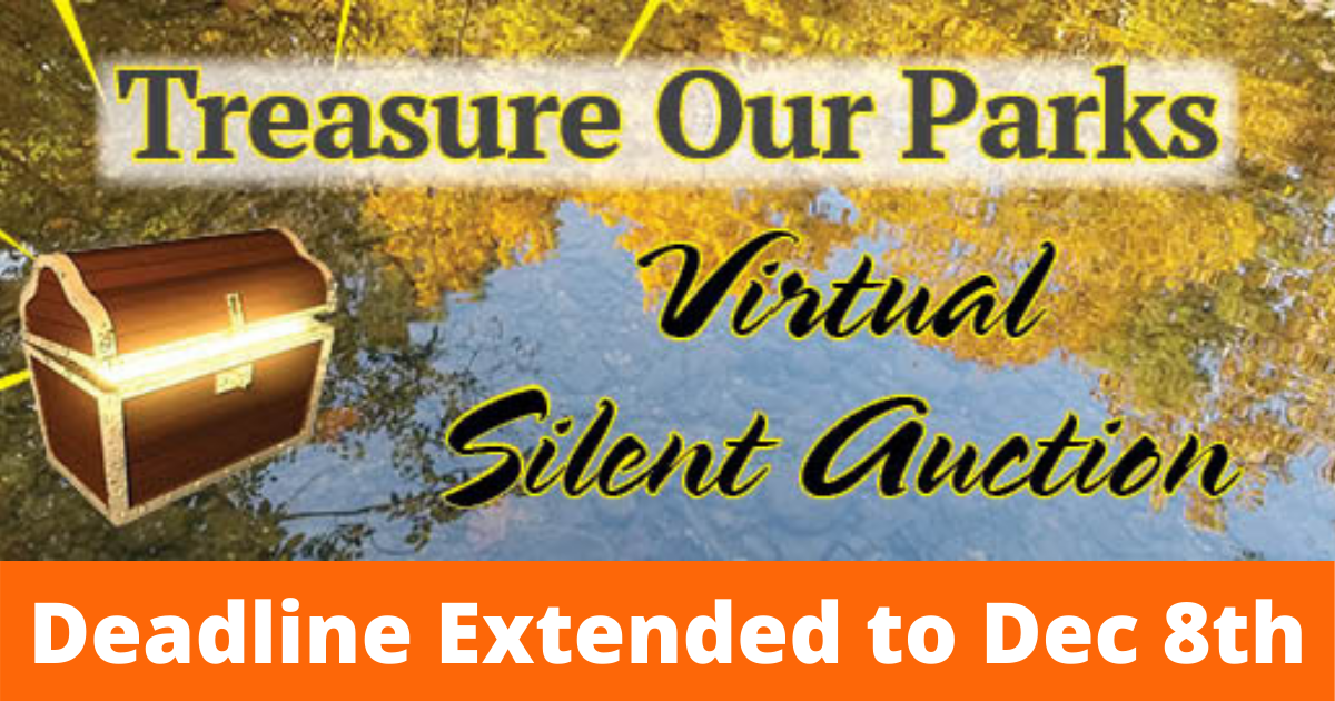 Because of wide-spread power outages this week, the Foundation has extended the closing date for their first-ever “Treasure Our Parks” Virtual Silent Auction. Find the secure auction link here. Bid early. Bid often.