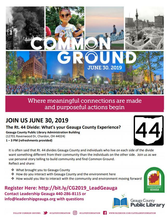Common Ground: The Rt. 44 Divide on Sunday, June 30th from 1:00 p.m. – 3:00 p.m. at the Geauga County Library Administration Building, Light refreshments will be provided. Register here
