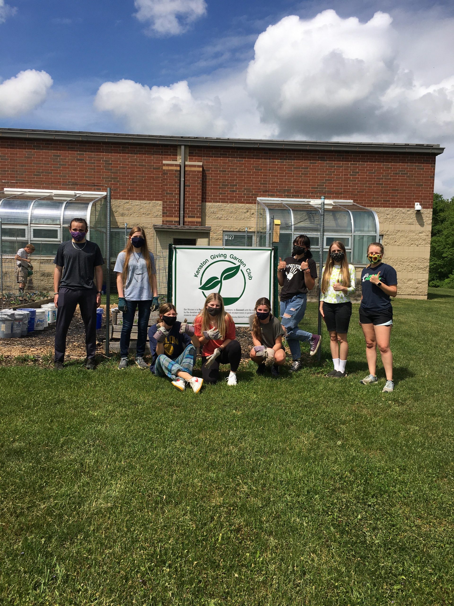 How will their garden grow? Sebastian Welter, Ashley Slates, Tori Scott, Ella Wenger, Julia Lechak, Marlowe Toth, Madeline Ramsey and Summer Davidson have been busy prepping the high school Giving Garden for the summer planting season. They have also started collecting and storing rainwater in donated rain barrels to water the gardens.