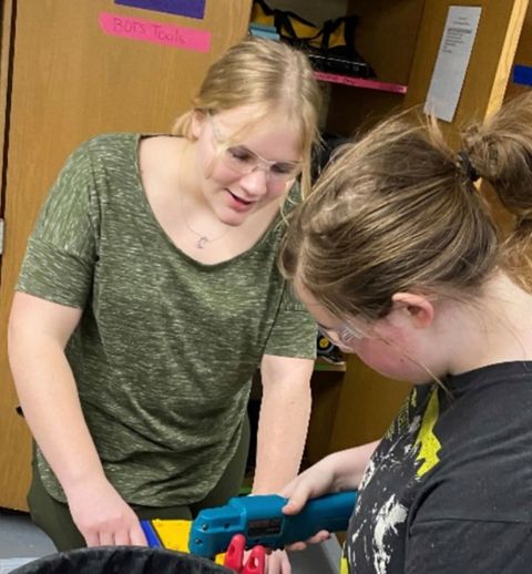 At the 2021 tournament, the Kenston Team Fortississimo comprised of rising sophomores, Elise Flinders and Madison Palmer (l-r) were the Combat Tournament winners and recognized for Best Documentation.
