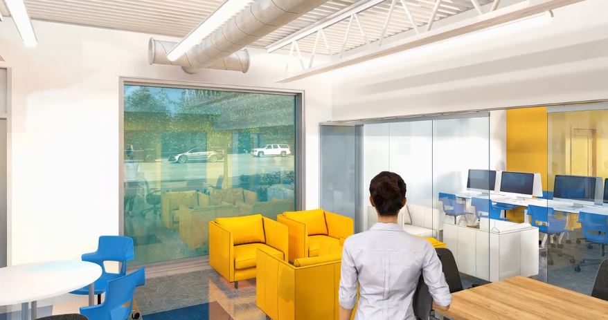 The new Student Learning Commons — including the relocated Library Services  —will expand into the space currently occupied by the nursing lab. It will flow from the side entrance in an open-concept design accented by glass walls and movable furniture to encourage different types of group collaboration. It will also include a multi-purpose area, private study/tutoring rooms, lounge and public-access cafe-style fresh food service replacing vending machines.