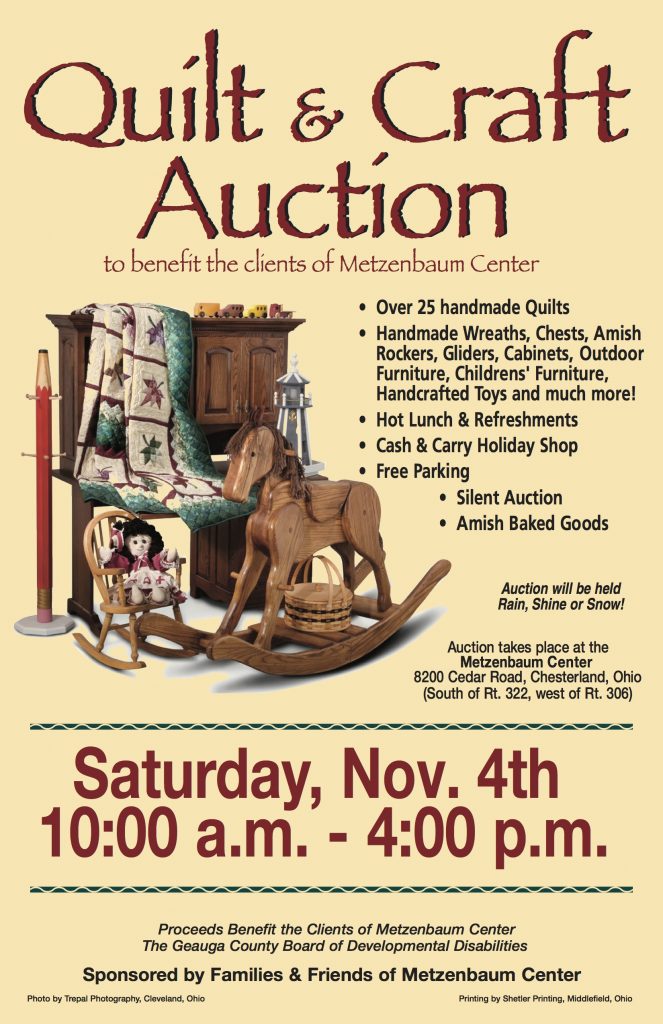 The 35th Annual Quilt and Craft Auction Benefiting the Metzenbaum Center is Saturday, November 4th