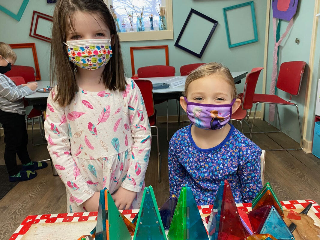 This class is a shortened version of our morning preschool offerings. Children arrive to easel painting and sensory/ fine motor centers for first 15 minutes then take part in an obstacle course:) We finish our time together in our art room discovering our weekly alphabet art projects that we create in our program. It is a great program if you want your kiddos to get a bit of school practice without the school year commitment. Or if you are already enrolled in a program this class can be additional enrichment. You can sign up month by month:) We are following protocols with temperatures upon arrival, washing hands and masks are optional.