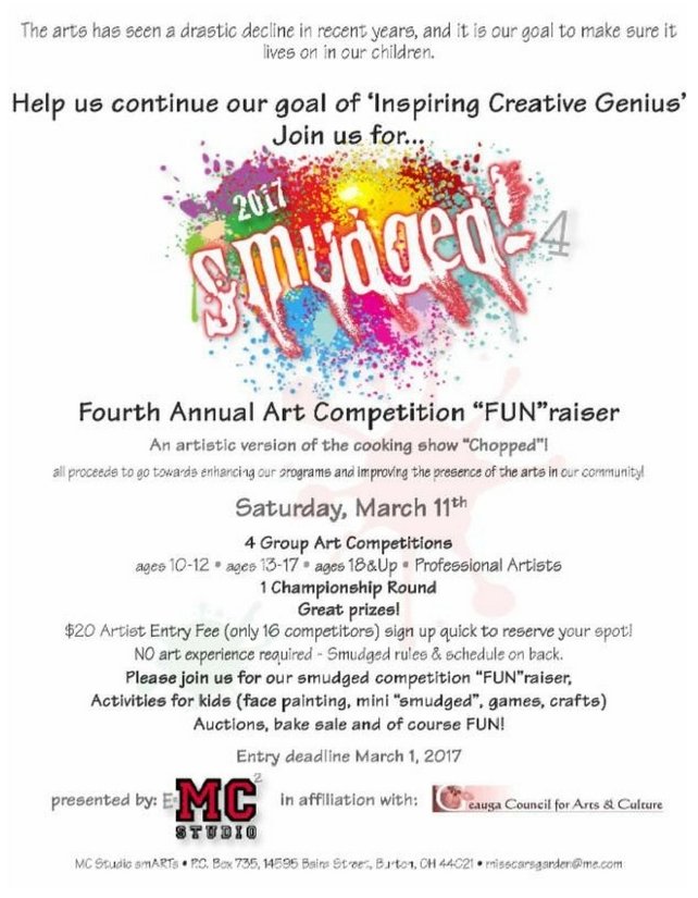 Lots of great Chinese auction items available – auctions close at 4:00 p.m. (Visit our website for more details – MC Studio smARTS Enrichment Center) All proceeds go towards enhancing our programs and improving the presence of the arts in our community! Come show your support!