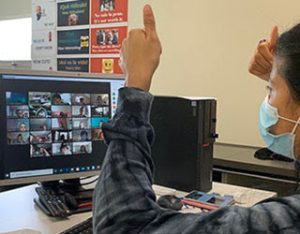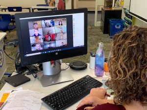 When live-streaming classes resumed this week, teachers pulled out all the stops to engage students in interactive Zoom sessions. Students follow their regular four-block schedules, with each class lasting 55 minutes. Teachers conduct lessons from their classrooms.