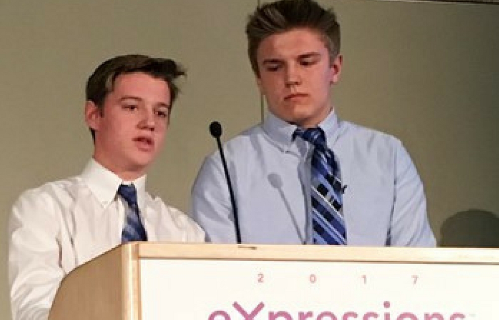 Pictured In Cover Photo: Augie King `19 and Zach Urda `19 present their Best-in-Show math project during the award ceremony of the Cleveland Clinic’s eXpressions Program at the Global Center for Health Innovation.