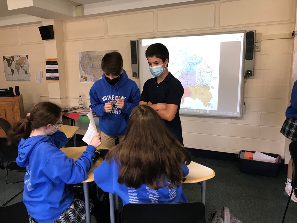 Grade 8 Military History Club explores the various military conflicts that the United States has been a part of starting with the American Revolution and ending with the Cold War. Students learn about these conflicts by using various types of primary sources, media clips, simulations, and more! This week in Military History Club, students in pairs and small groups represented different ‘countries’ forming alliances in the anticipation of a growing conflict. This simulation represented the alliances that brought many countries into World War I.