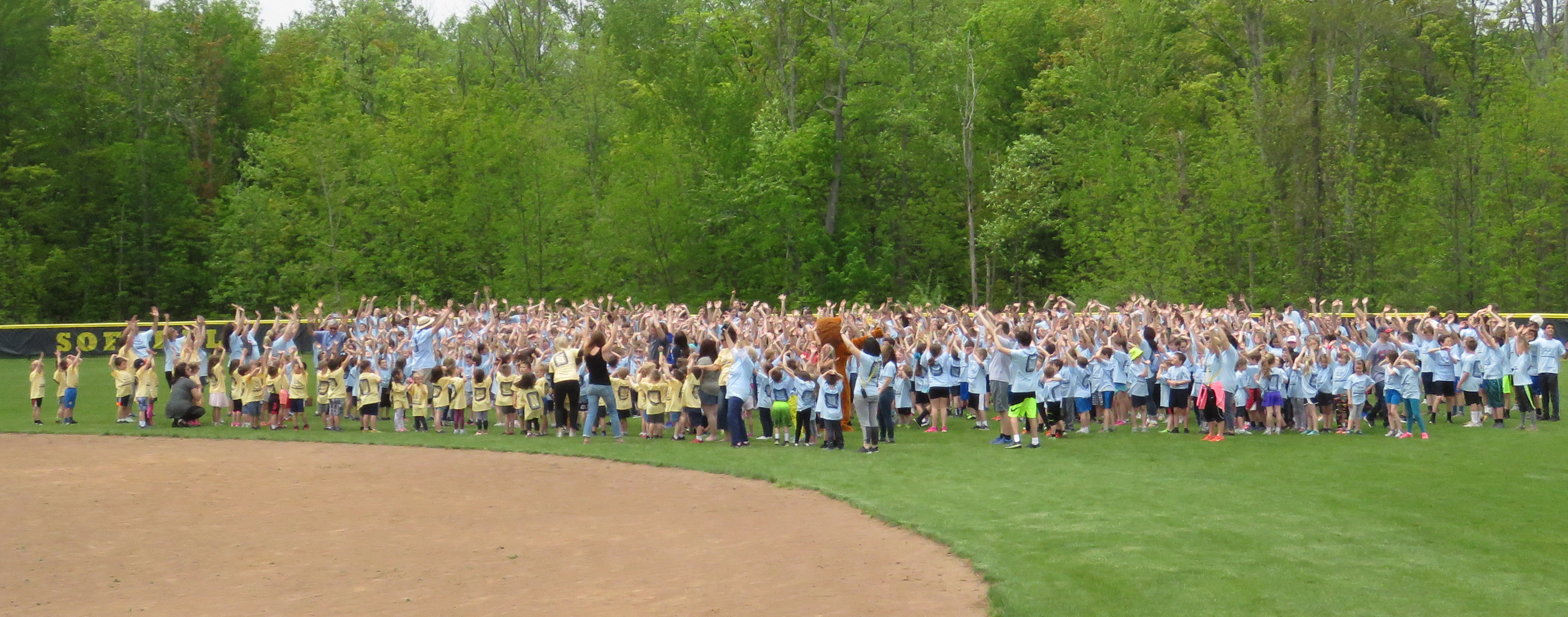 Pictured In Cover Photo: Notre Dame Elementary School Students from preschool – 8th Grade gathered on the baseball field.
