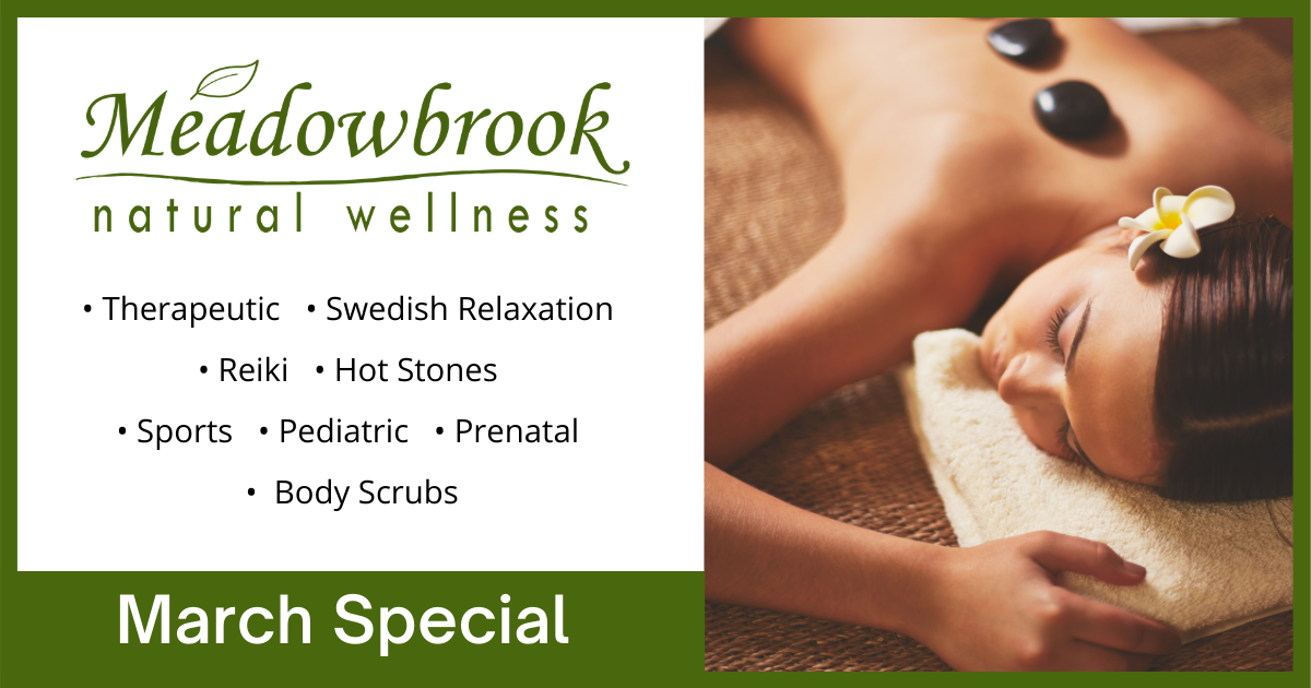 Relax, Rejuvenate and Save with Meadowbrook Natural Wellness March Massage Special