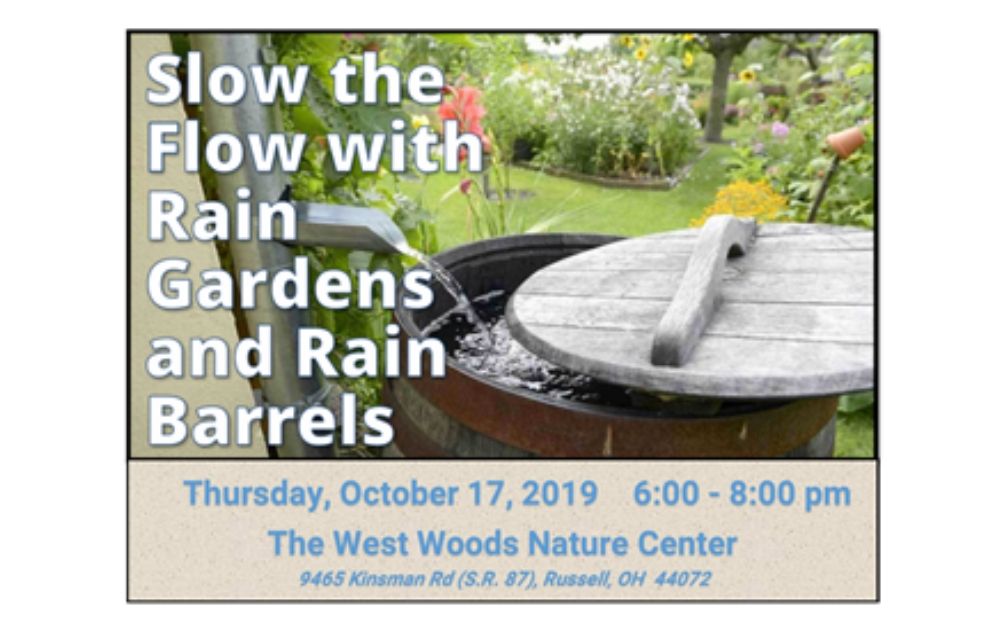 This introductory workshop will be held at The West Woods (9465 Kinsman Road, Russell, OH 44072) and is guaranteed to “wet” your water conservation appetite! Visit geaugaslowtheflow@eventbrite.com to register by Tuesday, October 15th or contact Geauga SWCD at 440‐834-1122 or gprunty@geaugaswcd.com. This program is part of the 2019 Runoff Reduction: Stormwater, Phase 2, and You education series.