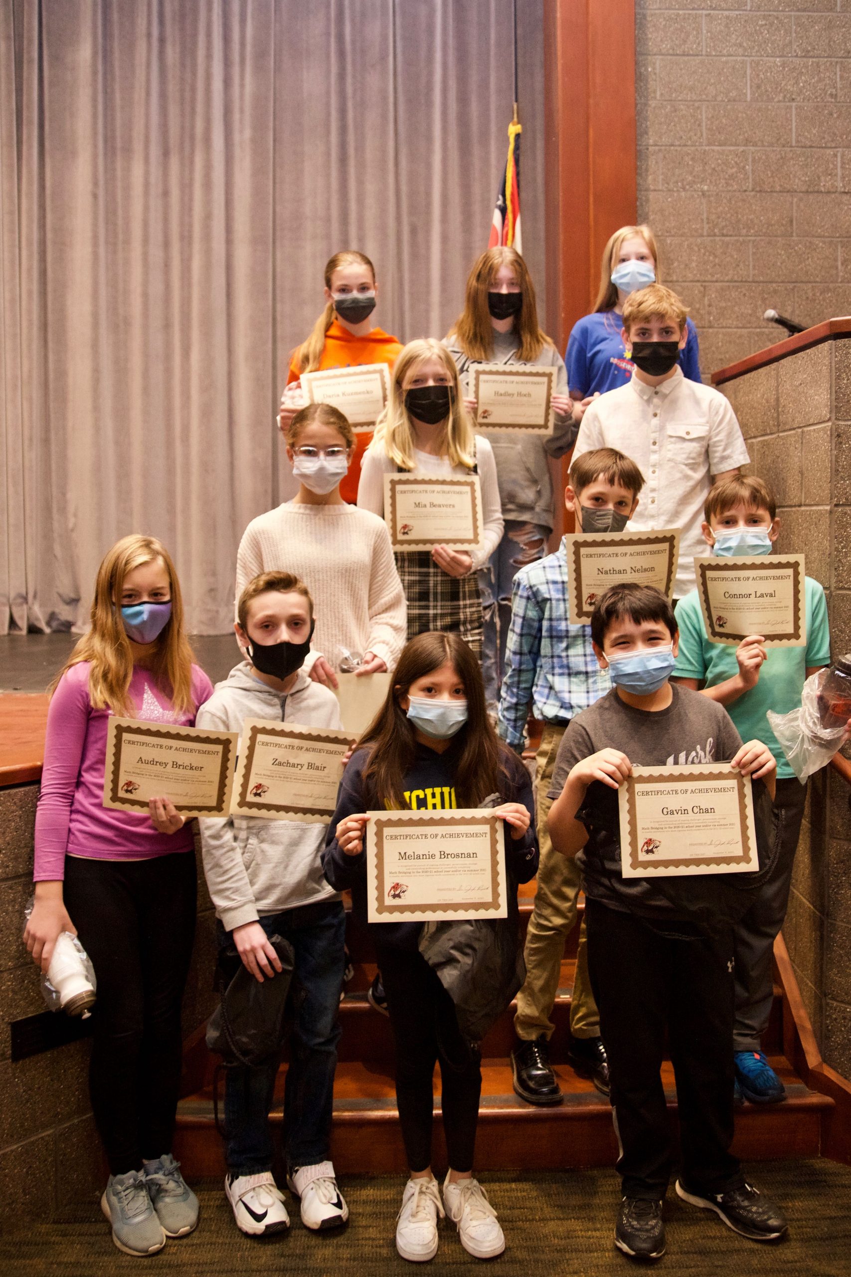 Math: These 17 students worked through summer 2021 to complete Math Bridging and move into more rigorous Math programming this fall: Mia Beavers, Zachary Blair, Audrey Bricker, Melanie Brosnan, Gavin Chan, Isabelle Deioma, Reece de Leon, Hadley Hoch, Daria Kuzmenko, Connor Laval, Tessa Martin, Nathan Nelson, Gregory Perry, Sophia Pitts, Eloise Pulte, John Rankin and Ella Young