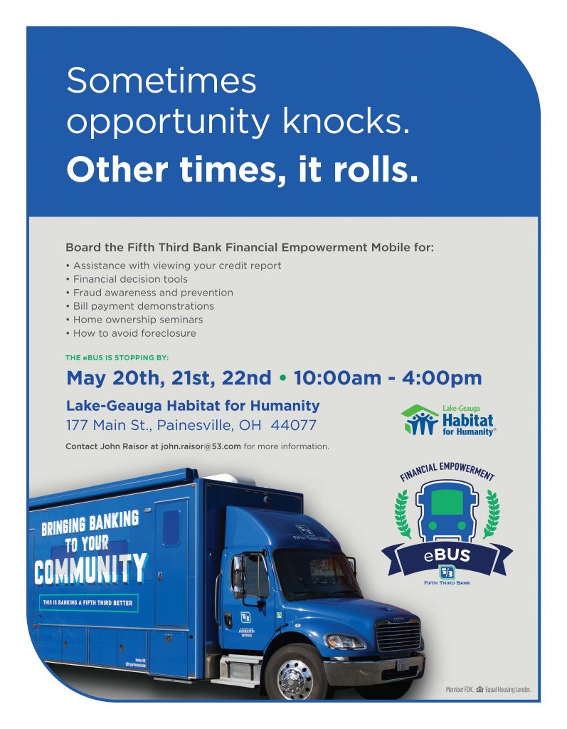 The Fifth Third Bank Financial Empowerment Mobil and Lake Geauga Habitat for Humanity are Partnering! May 19, 2019 by Geauga News Author: Geauga News
