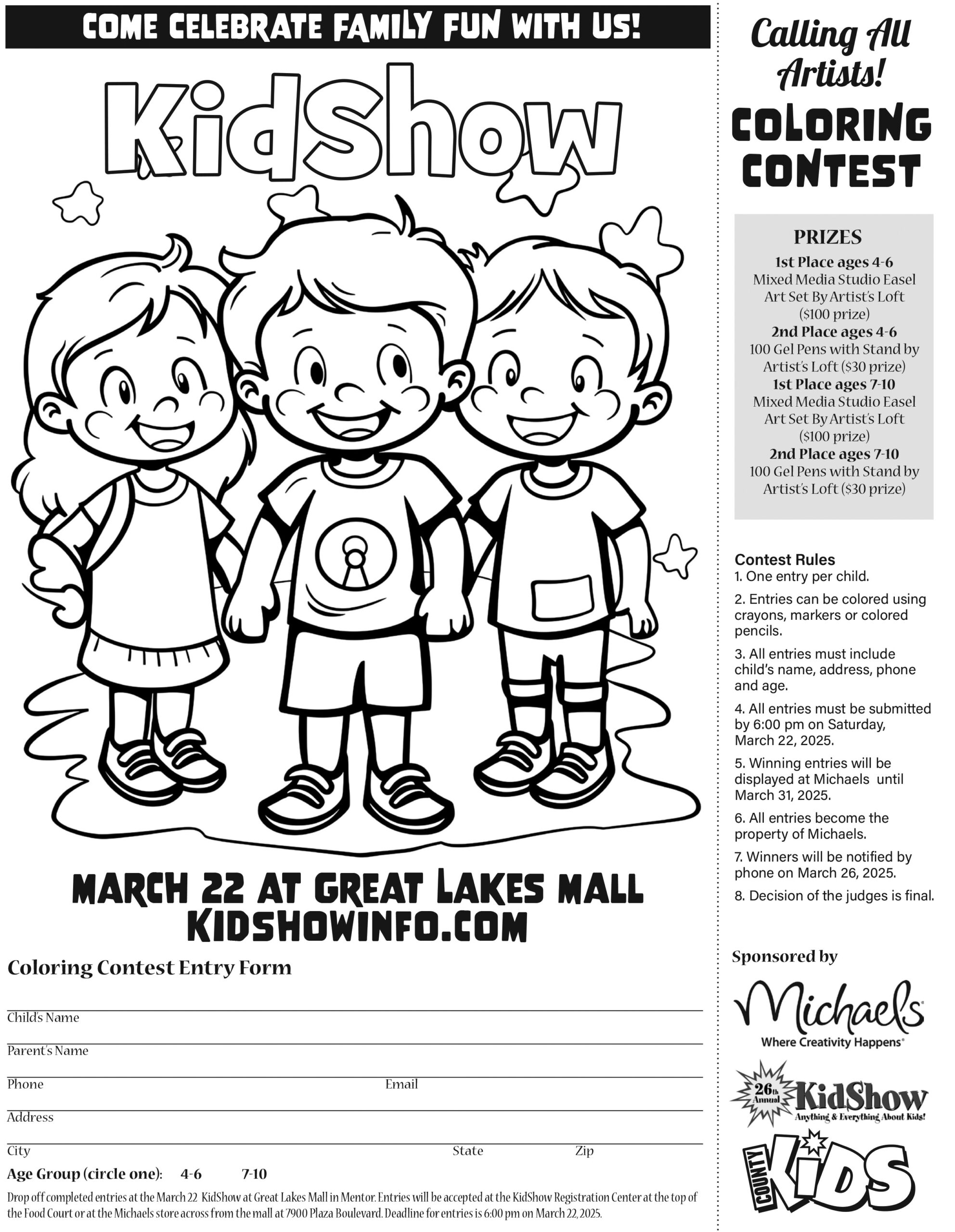 Entries Accepted at Michaels in Mentor or at the KidShow on March 22nd